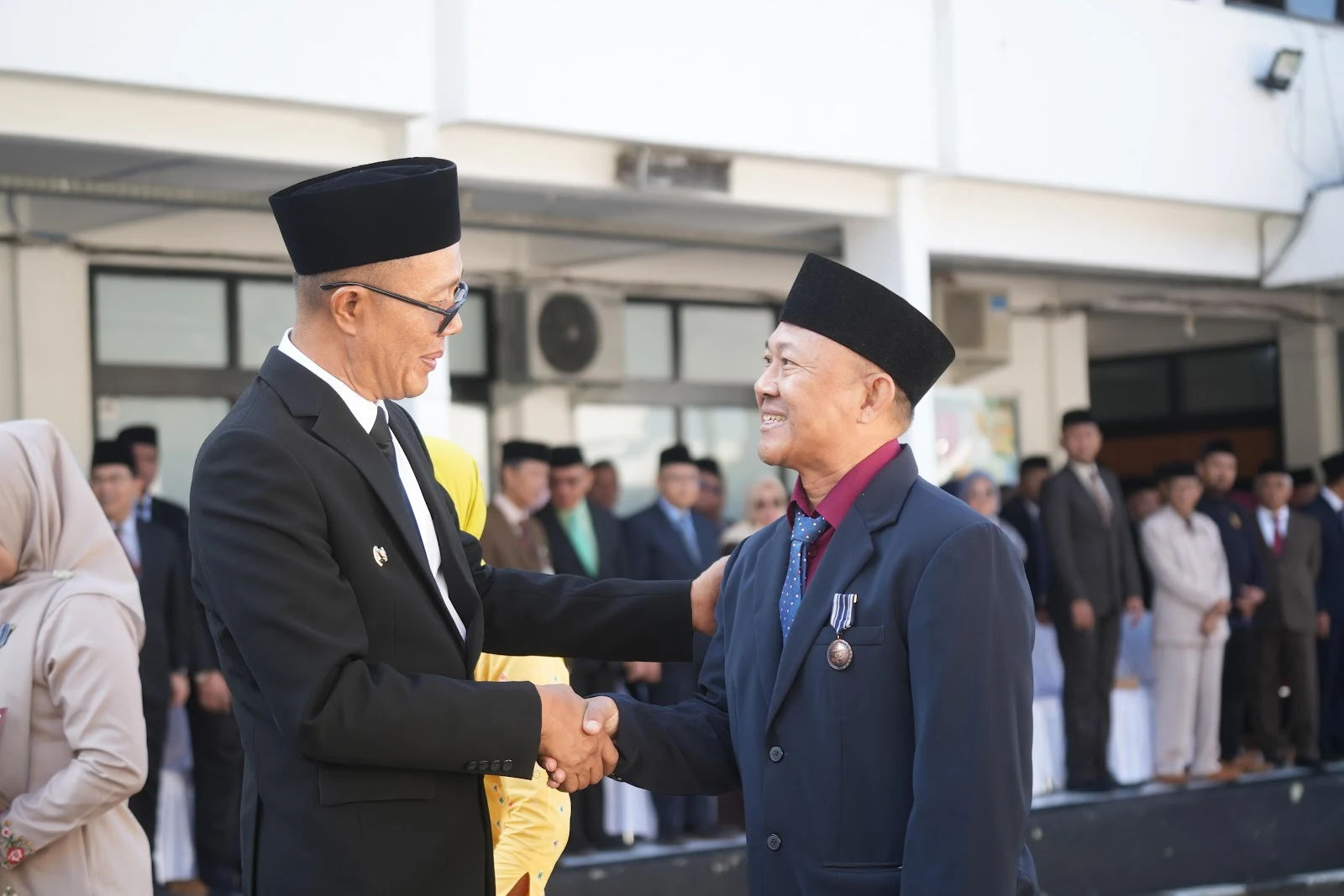 Dalam kesempatan tersebut, Pemerintah Kota juga menganugerahkan tanda kehormatan Satyalancana Karya Satya kepada lima orang ASN sebagai bentuk apresiasi atas pengabdian mereka dalam dunia pendidikan dan pelayanan publik.
